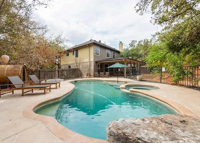 Com piscina privada para relaxamento dos hóspedes, a pousada Pool-Hot Tub-Putting Green-Sauna-Arcade-Oasis Austin está localizada 2.2 km de Convict Hill Quarry Park.
